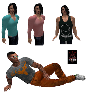 The Men Only Hunt 2 preview. 6 Tank by LE FORME = Meme mesh Tank Eye Wear by ShadZ = Classic Tshirt & Pants DECO = mesh Buck Jump Tshirt & Jump Pants Set Tee by D R O P = Basic Vneck Tee Aqua and pink All the hints and slurls will be on the official blog only The Men Only hunt 2 Blog